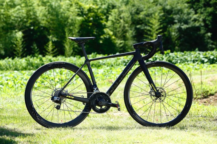 ディスクブレーキが付いていると、なんとなくコンフォート感というか、レーシングのイメージではなかった。しかしツール・ド・フランスではディスクブレーキ仕様のロードバイクに乗ったスプリンターが勝利を量産していたし、このR5を見れば、重量のハンディはまったくない。