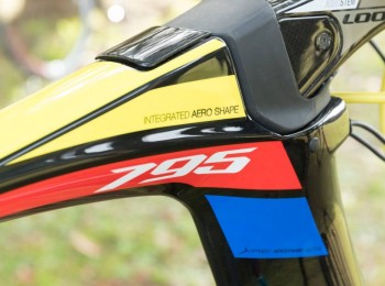 ニューモデルの765は、カーボンよりも衝撃吸収性に優れるナチュラル・フラックス・ファイバーのフラックスプライを、フロントフォークと左右非対称チェーンステーの中間に積層することで、剛性を損なわずに衝撃吸収性を向上。ジオメトリーにも特長があり長いヘッドチューブと短いトップチューブによって、ロングライドに最適なポジションを提供する。また電動ケーブル内蔵にも完全に対応した。公称重量は1,450g(未塗装Mサイズ フレーム1100g、フォーク350g)。
