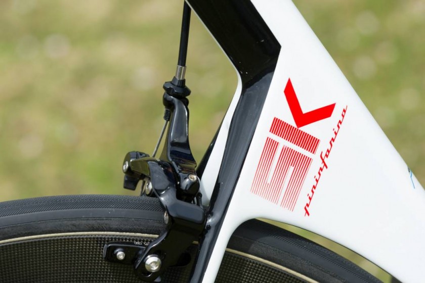 Pininfarinaの艶やかなロゴが所有欲をそそる1台だ。マシンの性能には何ら影響はないのだけれども…それでもやはり、このロゴが入っている方が私は好みだ。機材の性能も大事だが、「乗りたい」という感情を刺激してくれるデザインや特別感も大切な要素だと思う。そして外見とは裏腹に、上りでも軽さを発揮していたことには驚きだ。まさにエアロ形状をしたオールラウンダーである。そして乗車したときに浮かぶシャープなイメージ、コーナーでの路面のつかまりは良好。対比的なのはBB付近の剛性の高さがあげられる。ライダーのパワーをしっかり受け止めてくれるのだが、ガチガチで弾かれたり、突き返される様な嫌な感じはしない。体重の軽いライダーから剛脚の方まで幅広く受け止めてくれるだろう。