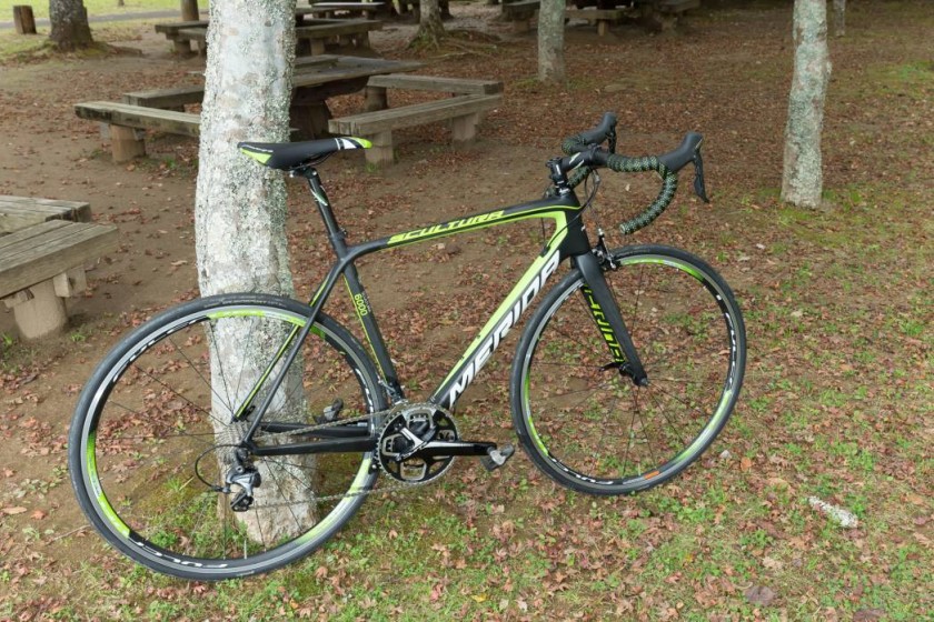 レースシーンで武器になる、エアロ性能・快適性・軽量性の3つがバランス良く備わっている。空力を考慮し、BB下にリアダイレクトマウントブレーキを装着し、シートステイからブレーキアーチを廃したことで、乗り味にしなやかさが生まれている。一方でフォークは剛性が高く、フレームをうまく導いているようなバランスの良さを感じる。ダウンチューブなどの形状からもエアロ性能を追求していることが分かるフレーム形状だ。上りでの走りも軽く、ロードレースからヒルクライムまで得意とするシチュエーションは幅広い。これといって不満は感じなかったが、リアブレーキワイヤーの出口がダウンチューブの「MERIDA」ロゴに被っていたのは個人的には少々ざんねん。