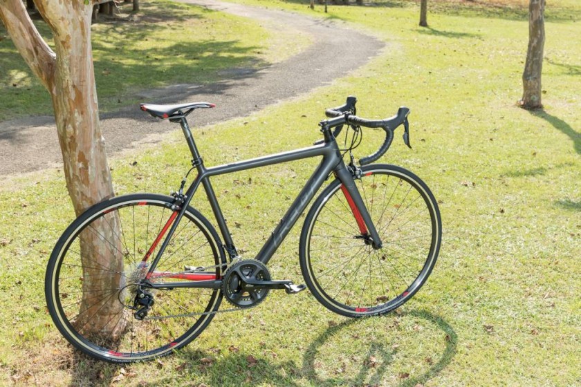 オーソドックスなフレーム形状に、カーボン柄の落ち着いたカラーリングには決して派手さはないが、流行り廃りに影響されずにずっと乗り続けられる雰囲気を持っている。シンプルがゆえに自分好みのバイクに作り上げていくことができるだろう。乗り味も同様に、パーツを組み替えてグレードアップしていくことで、長年ライダーを満足させてくれる性能を有する一台だ。 価格帯がとても幅広いロードバイク選びで、1つの選択基準として使われる「コストパフォーマンス」という点では、トップクラスのバイクだと感じる。乗ってみてとくに際立ったのはBB周りのしゃっきり感。ぺダリングの抜けが良く、平地も上りも軽快に走る。峠を走ったり、ヒルクライムレースに挑戦したい人にはとくにおすすめできる。ハンドリングは若干ではあるがクイックなところがあるので、その点は意識しておいたほうが良さそうだ。整備性と軽量性を意識したことで、ワイヤー類は外付けの仕様を選択している。ここは好みが分かれるだろう。