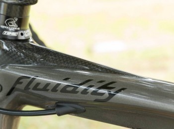 リヤブレーキのオイルラインはBB下を経由するため、ダウンチューブにアウトレット、チェーンステーは形状変更とともにトンネルが追加されている。