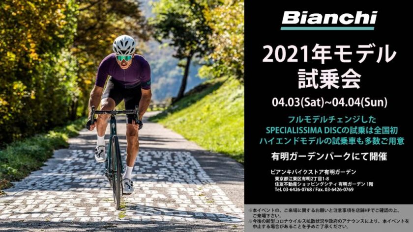 ビアンキバイクストア有明ガーデンにて、2021年モデル試乗会の開催が決定いたしました。