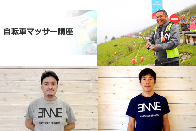 エンネスポーツマッサージによるマッサー講座第二弾/穴田悠吾院長、ENNE代表の中野喜文、そして特別講師にワールドチームであるバイクエクスチェンジの「宮島正典マッサー」。 2021年12月15日(水)開催