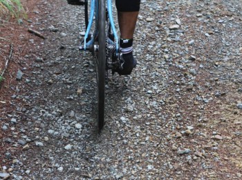 グラベルコース、と聞くとせっかくグラベルバイクで行くんだからグラベル比率が高い方が良いといつも考える。しかしこういうグラベル区間を抜けて舗装路に出るとホッとする。
