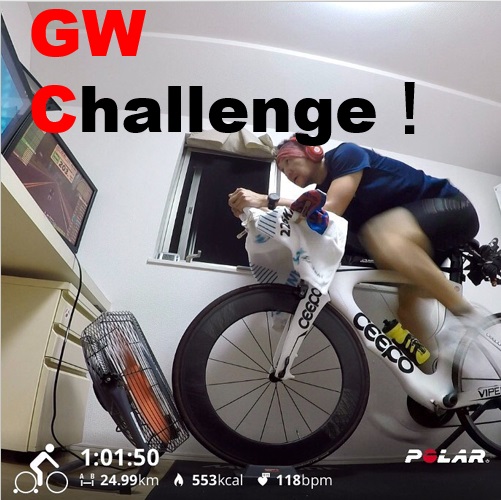 GWはずっとインドアでモニタにエンデューロの映像を写しながら三本ローラー 。
