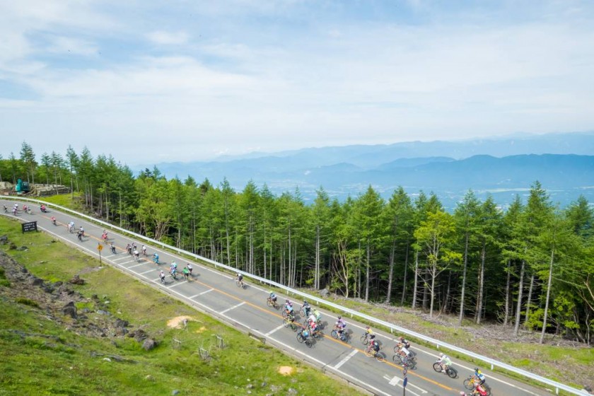基本的には勾配は緩いが、料金所から21km地点の緩奥庭駐車場前はそこそこの勾配だ。ここを抜けると残り500mまでほぼ平坦だ。アップテンポで後半をこなしてきたメンバーの士気は高い。ここを時速40kmで駆け抜け、ラストの上りはもはや「気合い」のみでこなした。脚はすでに売り切れているけど、それも同じFR90のゼッケンを付けた仲間が近くいるから気持ちが折れないのでペダルを踏める。前日に初めて出会ったメンバーだったが、五合目まで上っていると心強い仲間になった。上りは辛いが、とても心地よい時間だ。