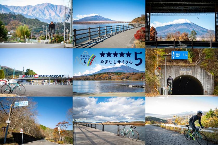 山中湖からスタートするバリエーション豊富な5つのコースは、2020のオリンピックの自転車ロードレースコースをなぞっていたり、一部のコースを使っています。