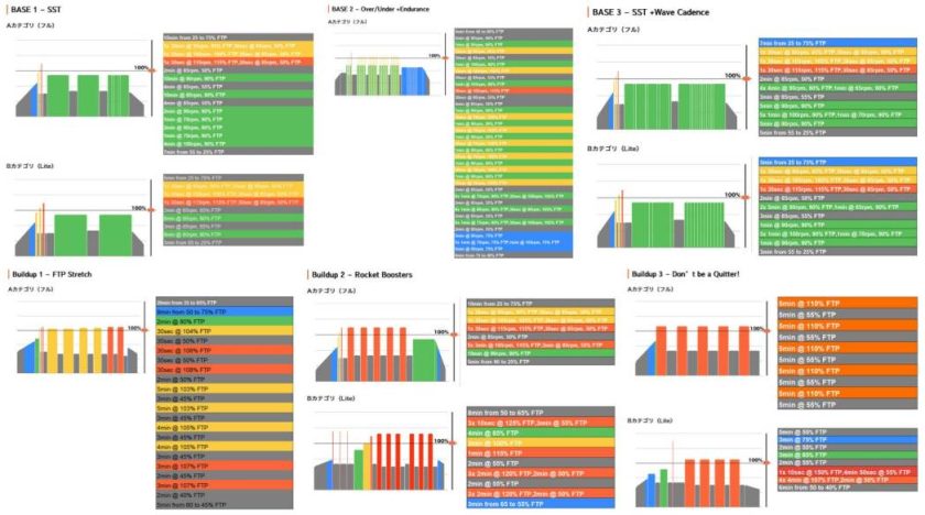 今回のMt.富士ヒルクライムのワークアウトメニューは、練磨され続けた既存のワークアウトメニューから採用をしています。ベース編からビルドアップ編までの6つのワークアウトのベースとなったオリジナルのメニューをここにまとめました。Aカテゴリーがフル(60分間前後)のメニュー、Bカテゴリーはライト(50〜90%ほどのボリューム)です。時間の都合やコンディションに合わせて使い分けてみてください。