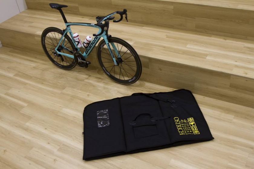 もちろんハードケースのシーコンやイーボック、弊社のOS-1000トラベルバッグなど滑車がついたタイプのほうが保護性能は高いです。でもオーバーウエイトを気にしたり、家での保管場所などが欠点といえます。それを補うのがOS-500ですね。犠牲にするのは多少の強度。そのぶんは自転車に養生をしてくださいね、ということになります。クイックを抜きましょう、リアディレイラーを外しましょうなど、養生を施すことで、メリットが生かされています。オールインワンな輪行バッグというのは皆無といってもいいでしょう。ちなみに愛三の選手はこれにさらにフレームとホイールの間にお風呂マットを挟んでいると言っていました。発泡率がいいので、緩衝材としていいみたいです。ーーサポートした選手からのフィードバックもありますよね