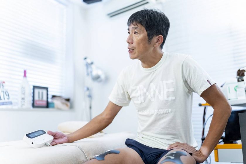 フルタイムワーカーはトレーニング時間の捻出だけでも工夫している方が多くリカバリーケアを怠りがちなわけですが、低周波治療器は『テレビを見ながら』『食事をしながら』『テレワークをしながら』『新幹線の中で』といった、好きな時間や場所で使用できます。私の場合は自転車レースなどを見ながらケアをしています。またレースにむけての移動や遠征中にも使える。自分のタイミングで施術できるというのが大きなポイントです」