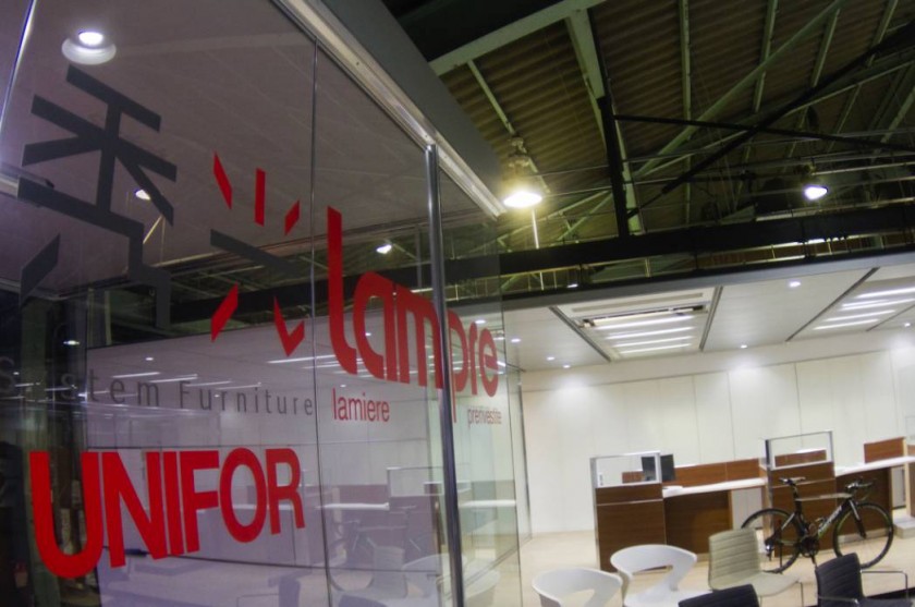ランプレとの関係は、ランプレのマテリアルの優位性を10年くらい前に見つけまして、それから弊社の商品に導入しました。用途はオフィスや銀行の中、そのなかでもATMコーナーの6〜7割は当社のもので、いわゆるカラー鋼板というものを使っています。これはみなさんの身近にありますね。
