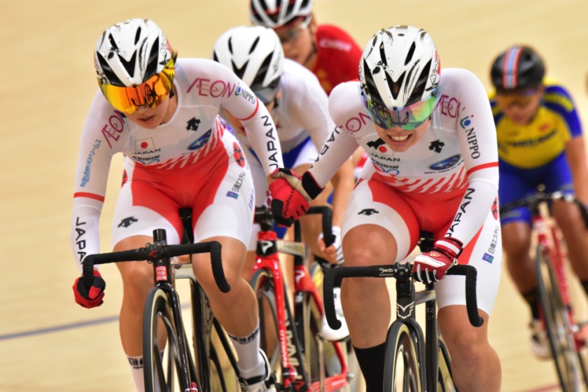 女子マディソンはアジア大会の雪辱を晴らすべく梶原悠未/古山稀絵ペアが出場。レースでは、好位置でレースを進める古山からハンドスリングを受けた梶原が持ち前のスプリント力を生かす形を主に得点を重ね、韓国とマッチレースの状態で終盤へ。倍点となる最終フィニッシュのスプリントで韓国に先着し、日本はマディソンで連覇を果たした。