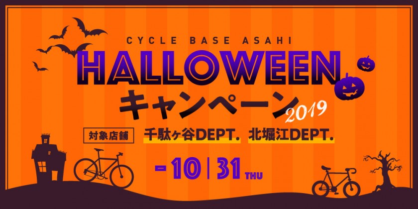 サイクルベースあさひの北堀江DEPT./千駄ヶ谷DEPT.の2店舗で、ハロウィンキャンペーンを実施する。