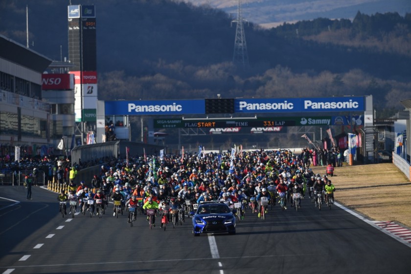 1月7日(土)、富士スピードウェイでは株式会社あさひの冠協賛のもと、「あさひスーパーママチャリグランプリ第10回ママチャリ日本グランプリ チーム対抗7時間耐久ママチャリ世界選手権」を開催。雲ひとつない晴天の中、輝く霊峰富士をバックに1,156 チーム、23,800人が参加、出走しました。