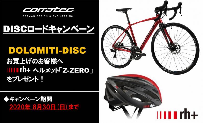 先着50名様にrh+「Z-ZERO」ヘルメットをプレゼント! CORRATEC「DISCロードキャンペーン」 実施のご案内/8月30日まで