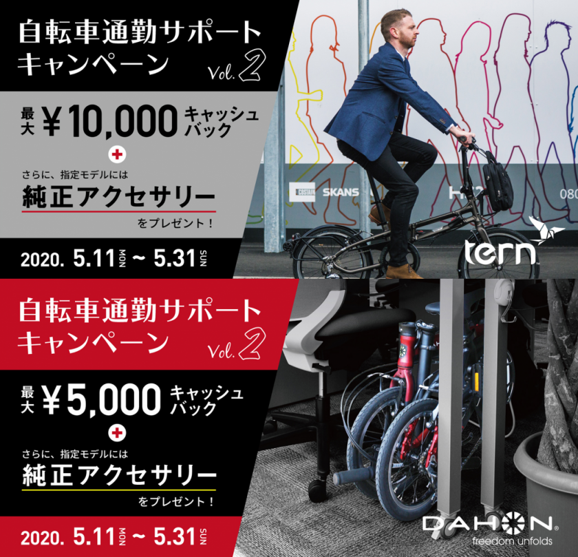 【DAHON & Tern】自転車通勤サポートキャンペーン Vol.2を開始。5月31日まで