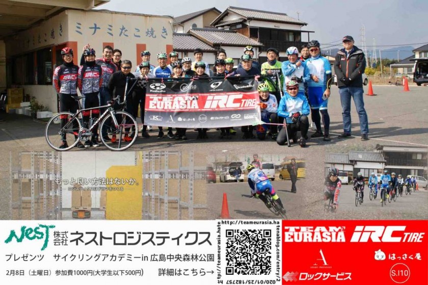 ヨーロッパで活動を行なっているチームユーラシアは、2月8日(土)にセーフティスクールとレーシングスクールを2部構成で実施します。会場は広島中央森林公園自転車コース。講師はチーム監督の橋川健さんと、選手として活躍する大町健斗さん。もちろんチームのメンバーも参加。