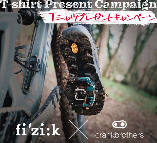 《フィジーク×クランクブラザーズ Tシャツプレゼントキャンペーン》 対象のfi’zi:kシューズとcrankbrothersペダルを合わせてご購入の方に、もれなくcrankbrothersオリジナルTシャツをプレゼントするキャンペーンを実施中。以下、ニュースリリースをお届けします。