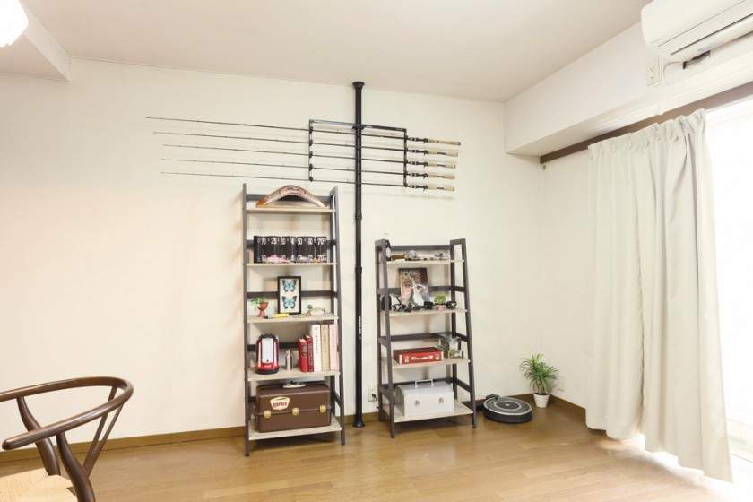 製品開発の背景には、趣味の“釣り”の必需品であるロッドを効率的に「魅せる収納」としてロッドをインテリアとして誰もが使用できるものを目指したという。