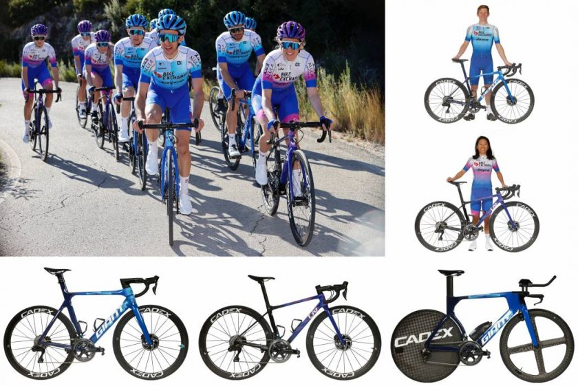 チーム・バイクエクスチェンジ・ジェイコのライダーは、あらゆるレースに対応できるよう、GIANTのバイクをフルラインナップで用意します。すべてのバイクには、CADEXホイールシステムとSHIMANOドライブトレイン・コンポーネントが装備されます。 また、GIANT のRev ProやPursuit TTヘルメットも年間を通して使用します。さらに、チームはGIANTのプロダクトデザイナーやエンジニアと協力して、今年後半に導入される最先端の新製品を開発・テストします。