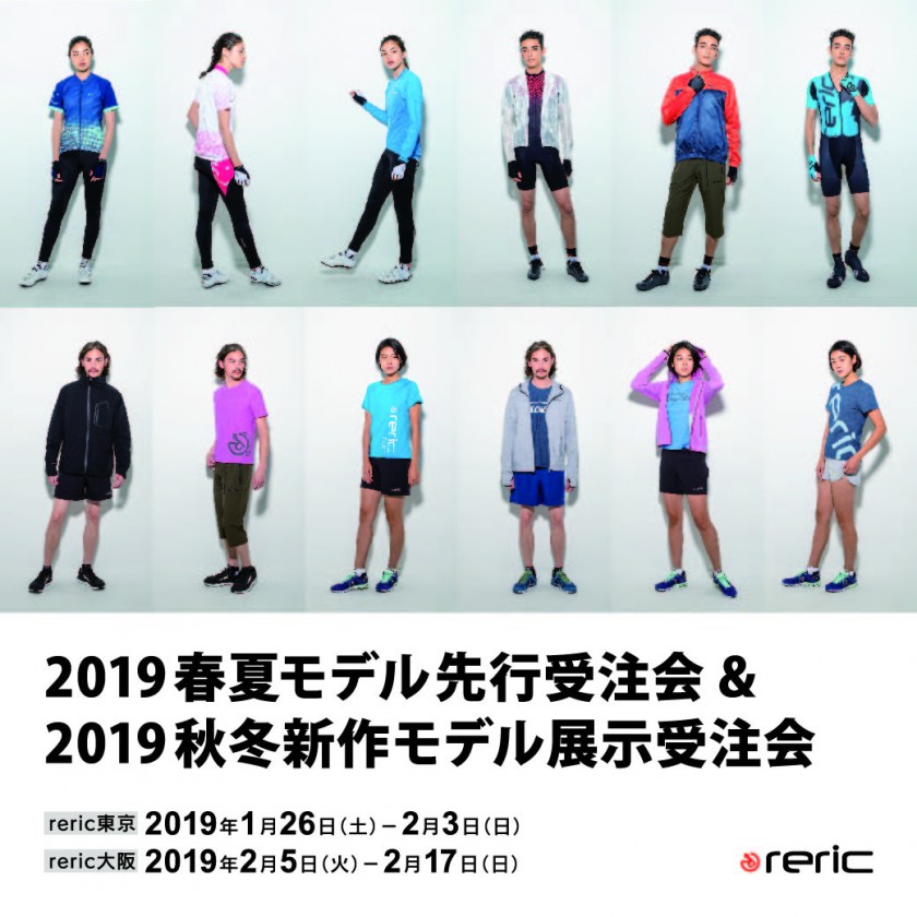 「reric(レリック)」の直営店(東京、大阪)では、この春から発売開始の2019 年春夏コレクションを店頭に展⽰し、先⾏予約会を開催する。新作をいち早く⼿に⼊るチャンス。また、2019 年の秋冬モデルの⼀部の展⽰予約受注会も同時開催する。
