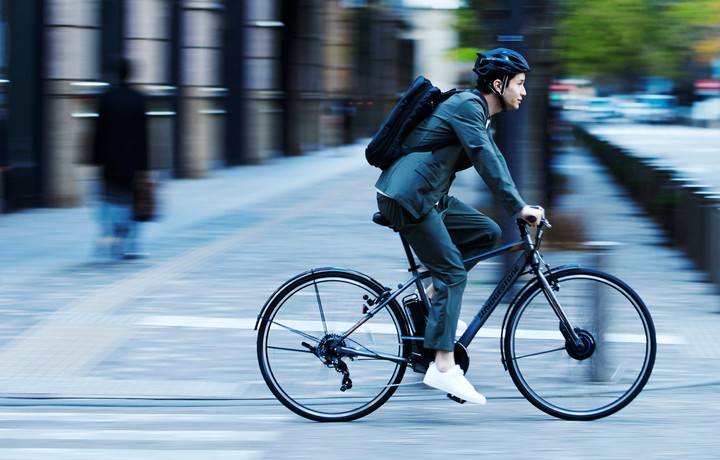 今回発売する「TB1e」は、両輪駆動モデルの特徴のひとつである「走りながら自動充電機能※1」を搭載し、1回の充電で走る航続距離が最大130kmと従来品比40%アップ※2を実現したことで、バッテリーを外す充電の手間の軽減や、通勤時のバッテリー切れを回避したいとの思いに応える製品です。また、通常のスポーツ自転車では標準装備されることの少ない鍵やドロヨケ、スタンドといったパーツも標準装備し、日常の実用性を確保しながらも、Vブレーキや外装変速機を搭載しクロスバイクが持つ走りの楽しさも兼ね備えた、より快適な通勤スタイルを提案する電動クロスバイクです。