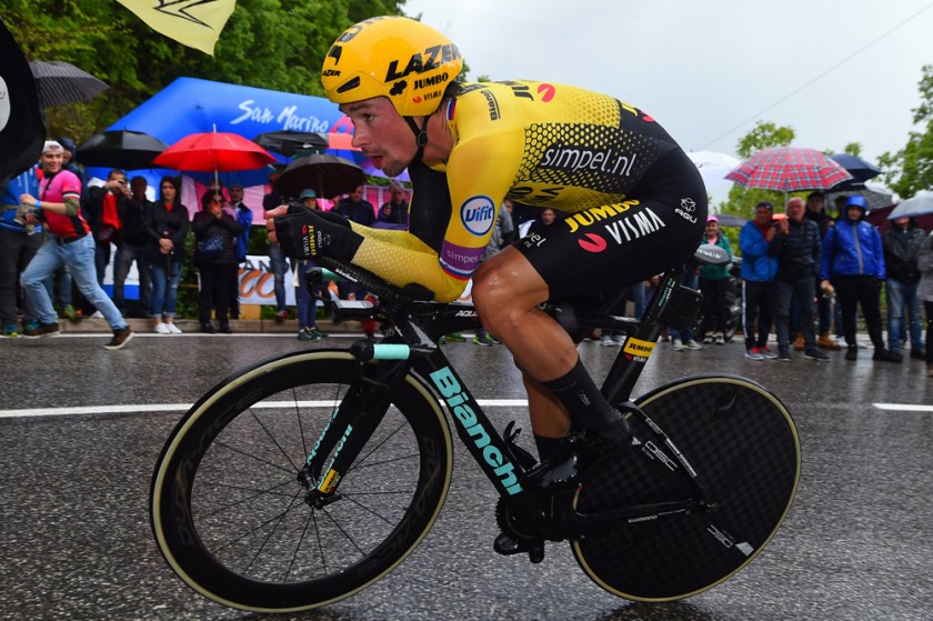 Team Jumbo-Visma所属のプリモッシュ・ログリッチェ選手が、5月19日(日曜日)にサンマリノで行われたジロ・デ・イタリア 2019のステージ9 個人タイムトライアルを首位でフィニッシュしました。 雨が降る展開になったステージ9 個人タイムトライアル(リッチョーネ~サンマリノ 34.8km)を、51分52秒のトップタイムで今大会2回目の個人タイムトライアルのタイトルを勝ち取りました。ステージ9での勝利により、総合順位も2位に浮上、首位とのタイム差も1分50秒に縮まっています。