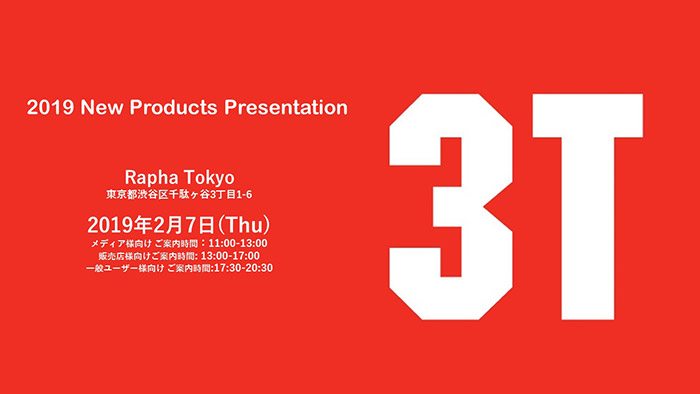 2月7日(木曜)に、イタリアンハイエンドバイクブランドの3TがRapha Tokyo(渋谷区千駄ヶ谷)にて2019年発売予定の新製品発表会を行う。