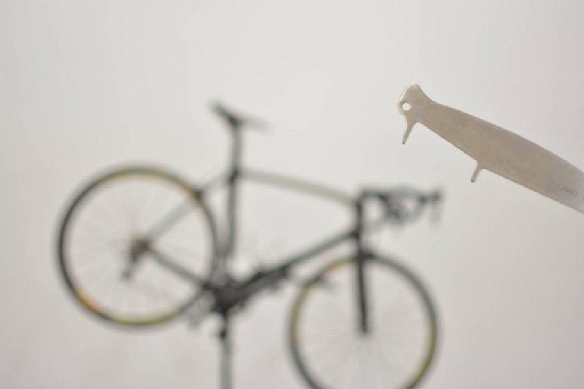 鳥類を模したものではない。チェーンの伸び、摩耗を測定するためのツールでチェック。これでチェーンの消耗度がわかる。