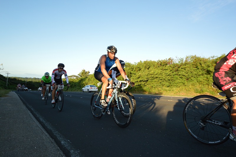 抜けるような青空、真っ青な海、とんでもないスコールの中のロングライドは、日本では味わえないと思います!