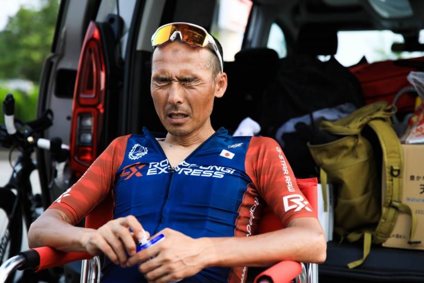 手首の痛みや背中の汗疹の煩わしさを訴えながらも脚は変わらず回り続けており、基本的に楽しそうに記録更新ペースを貫いた。午後11時26分、岡山市の宿泊ホテルに到着。427kmの距離を19時間かけて走った2日目が終わった。