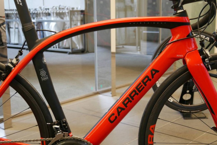 エアロロードの「TD01-AIR」には、ディスクブレーキ仕様が追加された。カレラのエアロフレームの中ではフラッグシップの「AR-01」、セカンドモデルの「エラクルエア」に続く3番目の位置づけで、高剛性な上位モデルと比べて快適性を兼ね備えたモデル。ディスクブレーキの追加で、より操作性も高まるだろう。