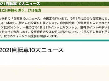 2016年に起きた自転車関連ニュースから、自活研理事会が選んだ10本のニュースと、会員やサポーターが自由回答で推挙した項目を