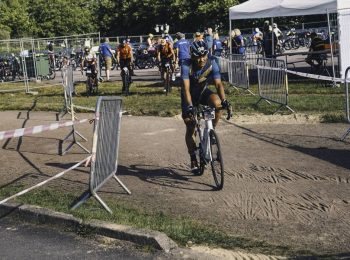 バイクをラックに置いてチェックポイントまでバイクシューズでランニング。2番目で捺印を終えてバイクへ即座に戻る。