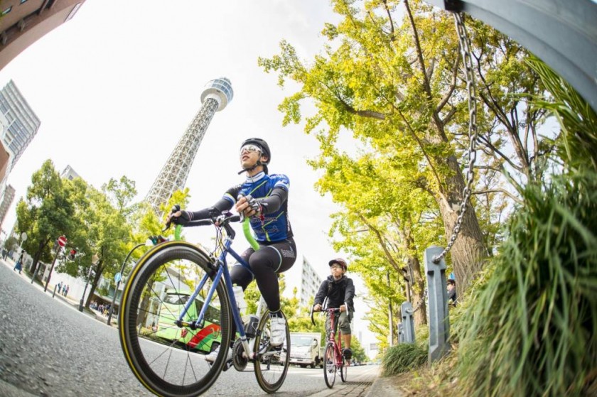 スタートはどこか舶来の匂いのする横浜山下公園。と、その前にせっかくなので中華街前で連載第1回の記念撮影。中華街にもハロウィンの仮装をした子どもたちがたくさん。どうやら小高部員のサイクルジャージ姿が珍しいようで絡まれる絡まれる。お兄さんは仮装じゃないよ……。