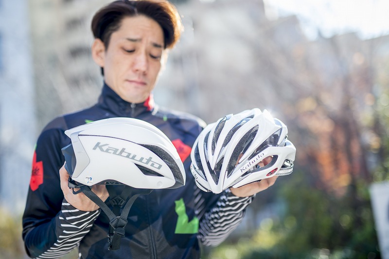 突然ですが、皆さんはヘルメットを何個持ってますか? 私は3個。キングギドラでもあるまいし、3つも要らないですよね……しかも全部普通のタイプ。ひとつくらいエアロヘルメットがあっても良いじゃないかと思う今日この頃です。そして最近のエアロヘルメットはショートタイプが主流で、通気性も良いモデルが多くなり、普段でも使いやすくなってます。逆にノーマルヘルメットは軽さと通気性に突き進みつつもエアロ効果も考慮されたモデルに進化していますね。ん? 待てよ。ということはノーマルとエアロの差はなくなってきているのだろうか。これはしっかりと検証しなくては……。ということで今回の対決はヘルメット! 比べるのは「通気性抜群のノーマルヘルメット」と「空力抵抗に優れたショートエアロヘルメット」。今回使用したモデルはKabutoの「Zenard」と「aero-R1」。