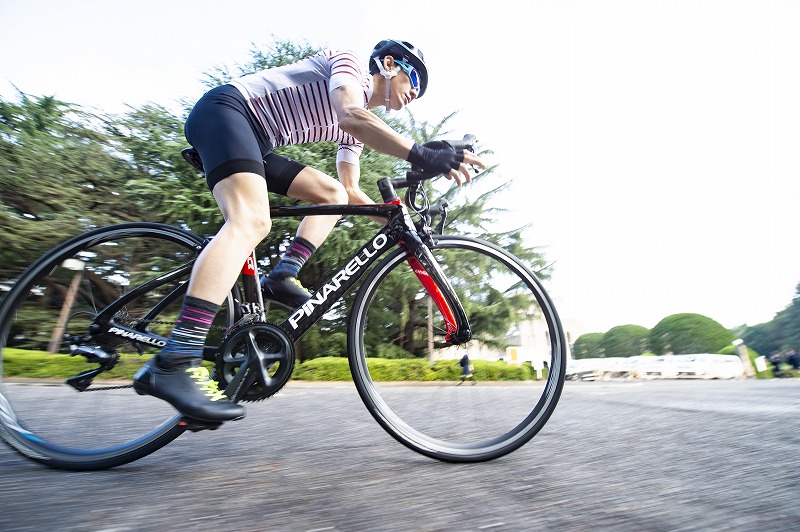 と、その前に……プリンスのインプレッションを少々。いやはや、流石ですね。完成度が高い!「レースからロングライドまで」という謳い文句ですが、乗ってみるとその実、しっかりとしたレーシングバイクです。むしろ「“ロングライドも疲れない”レーシングバイク」という感覚です。フラッグシップモデルであるDOGMA F10 譲りの技術で反応も良いですし、ハンドリングも安定しています。とにかく無茶したところがないオールラウンダー。決して軽いとは言えない足回りなのに、上りも軽快にこなします。特徴的なのは、ボトル装着時に空力的に最適な形状になるというダウンチューブとフロントフォーク。フォークフラップは猫が香箱座りしているみたいで可愛く感じますが、フレーム形状と相まってエアロ効果は大きそうですね。これぞPRINCE!名車復活です。